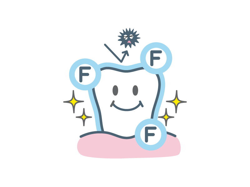 フッ化物には歯の質を強くしたり、虫歯菌の働きを抑える効果があります。